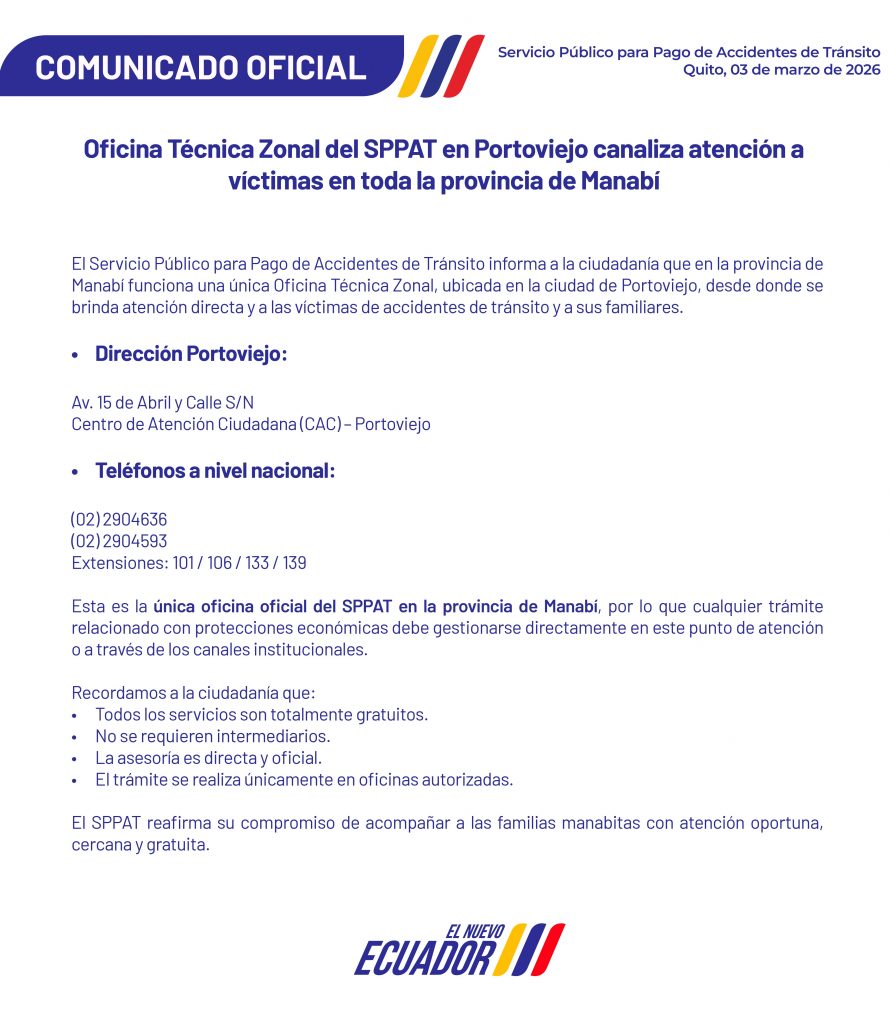Comunicado Oficial – Oficina Técnica Zonal del SPPAT en Portoviejo canaliza atención a víctimas en toda la provincia de Manabí